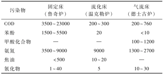表1 不同氣化工藝產生的有機廢水水質