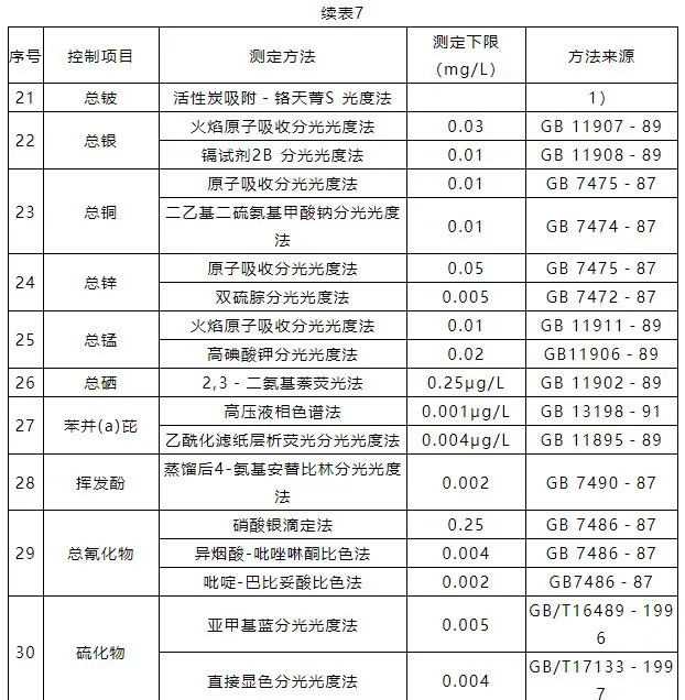 3. 監(jiān)測(cè)分析方法按表7或國(guó)家環(huán)境保護(hù)總局認(rèn)定的替代方法、等效方法執(zhí)行。