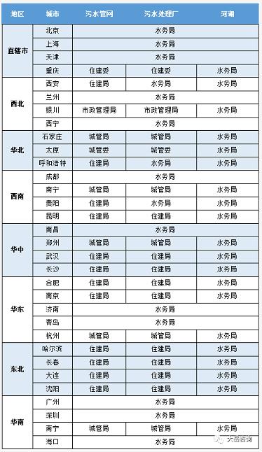 由此可見,全國主要城市污水處理廠、污水管網(wǎng)及河湖管理的主要模式為:污水處理廠及污水管網(wǎng)統(tǒng)一由住建局或城管局管理,河湖由水務(wù)局管理。
