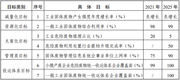 表 1 浙江省 2022-2025 年工業(yè)固體廢物污染防治主要目標