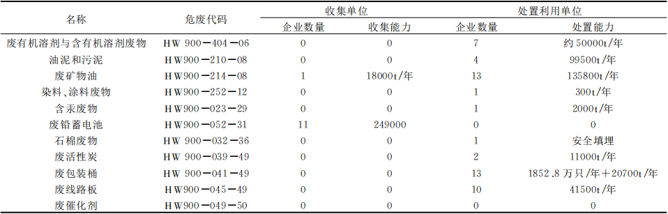 表2 無錫市汽車維修危險(xiǎn)廢物處置能力一覽